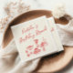 As you see this unique and elegant birthday brunch napkin has a well designed template. With red hand drawn brunch tableware of pancakes, floral bouquet, tea, cupcakes, wine bottle and glass, grapes and whimsical hand written name. All on cream background . Which you can customize easily by clocking on the personalize button.