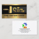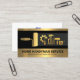 A black cover features a gold roller brush with a grey stripe of paint. Inside this grey layer of paint is a set of gold handyman tools. Gold stripes further encapsulate the upper and lower rims of the card. Towards the base lies the business name and the contact details.