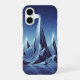A unique retro landscape featuring crystal-shaped mountains glowing with cool vintage tones.