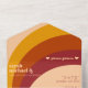 Classic vintage 70s retro colors with wavy curved arch striped lines all in one wedding invitation. Cool design with hippie colors cream, orange and red. Personalize it by adding the bride and groom name and wedding details.