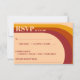 Classic vintage 70s retro colors with wavy curved arch striped lines wedding RSVP response card. Cool design with hippie colors cream, orange and red. Change the number for the amount of tables you have.