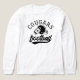 Layer up for the stands with this white long sleeve tee featuring retro varsity-style typography and a football helmet graphic with a customizable team name and player number. The lightweight long sleeve is perfect for early fall games and layering under a vest or jacket as the season cools down. Customize with your player's jersey number for spirit wear that goes from the bleachers to brunch.