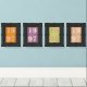 The collection presents a quartet of framed artworks, each piece a canvas painted with the past. The numbers, presented in a soft, pastel shade, float on a background of four distinct colors: a rich, energizing orange, a regal purple, a fresh spring green, and a soothing peach, offering a palette that can harmonize with a wide array of interior designs.