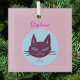Retro Cute and Whimsical Purring Kitty Glass Ornament