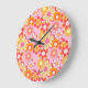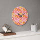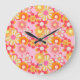 A lovely large wall clock with many retro yellow and orange flowers and a pink hue! Perfect for a gift.