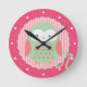 Cute owl in light green and pink colors inside a stripped doily with a light green bow. Deep pink pattern on the background. Colorful, ideal for girly girls. Clipart by Memomint.