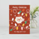 Retro Cute Santa with Fairy Lights Red Holiday Card