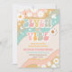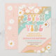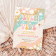 Celebrate your childs special day with this groovy retro birthday invitation featuring colorful wavy stripes, cheerful daisies, peace signs, hearts, stars, butterflies, and a smiling sun. Perfect for a 7th birthday party, this vibrant design captures the fun-loving spirit of the 70s with a modern twist. Guests will love the playful vibe and whimsical details, making it ideal for retro, hippie, or rainbow-themed celebrations. Customize easily with your party details to create a unique invitation that sets the tone for peace, love, and fun.