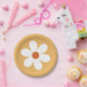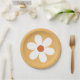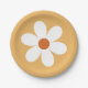 Retro inspired groovy one first birthday party plates with 70's style daisies and boho fonts and colors.