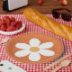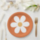 Retro inspired first birthday plates with 70's style daisies and boho fonts and colors.
