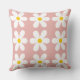 Boho dusty pink Retro Daisy Floral Pattern throw pillow cushion
