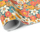 This retro daisy floral wrapping paper features bold orange, teal, yellow, and coral flowers inspired by 70s groovy patterns. Perfect for birthdays, bridal showers, Mother’s Day, spring gifts, or anyone who loves colorful floral style.