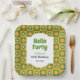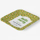 Green and yellow retro groovy daisy flower in checkered box pattern Birthday paper plate.