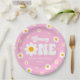 This is a Pink Retro Daisy Flower Groovy One 1st First Birthday Party Paper Plates.
