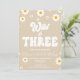 Retro Daisy Flower Wild & Three 3rd Birthday Party Invitation