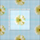 This cute design has a retro pattern of daisies on a blue gingham check background.
