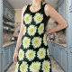 Retro daisy pattern in dark green apron