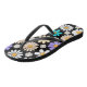 Retro Daisy Pattern Simple.01. Black BG Flip Flops