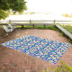 Retro Daisy Pattern Simple.01. Blue BG Outdoor Rug