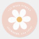 Retro inspired first birthday return address labels with 70's style daisies and boho fonts and colors.
