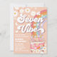 Celebrate in groovy style with this retro birthday party invitation featuring a pastel peach background, cheerful daisies, butterflies, and a vibrant rainbow. A flower-power van with peace symbols adds a fun 1960s hippie vibe, perfect for kids who love colorful and playful designs. This customizable invite is ideal for a 7th birthday or any retro-themed celebration, making it easy to set the tone for peace, love, and fun. Personalize with your party details to create a unique keepsake guests will adore.