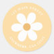 Retro inspired first birthday return address labels with 70's style daisies and boho fonts and colors.