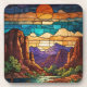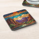 Retro desert scene Sedona mountains stainglass art Beverage Coaster
