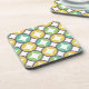 Retro Diamond in Circle Pattern Blue Green Gold Beverage Coaster