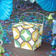 Retro Diamond in Circle Pattern Blue Green Gold Favor Boxes