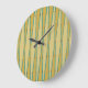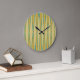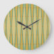 This clock has a mid-century modern design of a series of diamonds and triangles in retro colors.