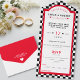 Retro Diner Checkerboard Red Black & White Wedding All In One Invitation