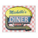 This cool, retro 50s diner sign acrylic wall art can be easily personalized with your own name. The background is a slightly-distressed pink-and-white checker pattern, and the 1950s-style sign on top says DINER and OPEN in neon with space for your first or last name at the top.