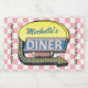 This cool, retro 50s diner sign artwork can be easily personalized with your own name. The background is a slightly-distressed pink-and-white checker pattern, and the 1950s-style sign on top says DINER and OPEN in neon with space for your first or last name at the top.