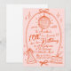 Retro disco ball birthday invitation in blush pink and terracotta. Hand-drawn groovy design featuring a disco ball with bow, party hat, cake slice, and sparkle accents inside an oval arch border. Fully customizable on Zazzle — personalize name, age, date, venue, and RSVP details. Perfect for kids' birthday parties, 10th birthdays, disco-themed parties, and retro birthday celebrations.