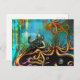 Retro Diver Wearing a Metal Diving Suit Octopus Postcard