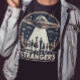 Not just another alien t-shirt, this item captures the whimsy of encountering the unknown with a flying saucer graphic that seems to hover right off the fabric. The playful warning, "Don't Talk to Strangers," adds a humorous twist to the otherwise mysterious and awe-inspiring theme of intergalactic travel and UFO lore.
