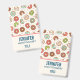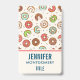 Name badge with a cute pattern featuring donuts tumbling all around. Pink, green, brown and cream colors really give this design a cool retro feel.