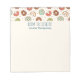 A personalized notepad with a cute pattern featuring donuts tumbling all around. Pink, green, brown and cream colors really give this design a cool retro feel.