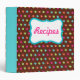 Bright, candy colored dots give this recipe binder retro style. Use this empty binder as a recipe organizer, cookbook, recipe book, folder, notebook, organizer, scrapbook, gift, etc...The design is from original art.