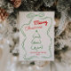 Retro Drawn Red Green Christmas Tree Bow Non-Photo Holiday Card