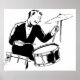A retro style design of a drummer playing. This design looks really effective on these Poster