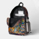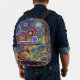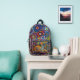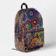 retro painting of circles and waves with a cute bird swimming in this retro hippie painting.