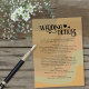 This enclosure card is designed to provide your guests with additional information on the reception, accommodations, travel arrangements, registry, website, directions, or any other specifics that your guests might require. Features a fun retro typography design including fancy block lettering with hearts and swashes on an earthtone stripes background in shades of tan, taupe, and sage green.
