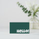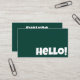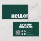 Make your business simply fun and cleanly elegant . A minimalist neutral emerald green retro groovy hello unique business card template . As you see it features warm plane dark green background. And white elegant bold groovy font of hello in the front . And in the back you have the full name and title .And social media icons and custom QR code with other info. You can simply customize it by clicking in the blue Personalize button and then change the info. What you waiting for!! Go a head and grab it . we guarantee you the amazing quality and fast shipping.