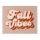 This retro-inspired fall design prominently features the phrase "Fall Vibes" in a bold, 3D-style font that immediately grabs attention. The text is layered with warm autumn colors, including rich oranges, deep reds, and soft creams, creating a sense of depth and dimension that makes the words pop off the background. The vintage-style typography with its soft, rounded edges gives the design a nostalgic feel, reminiscent of classic 1970s aesthetics. The playful shadows and color contrasts add to the design's dynamic, eye-catching appeal.