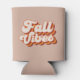 This retro-inspired fall design prominently features the phrase "Fall Vibes" in a bold, 3D-style font that immediately grabs attention. The text is layered with warm autumn colors, including rich oranges, deep reds, and soft creams, creating a sense of depth and dimension that makes the words pop off the background. The vintage-style typography with its soft, rounded edges gives the design a nostalgic feel, reminiscent of classic 1970s aesthetics. The playful shadows and color contrasts add to the design's dynamic, eye-catching appeal.