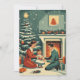 Retro Family Christmas by the Fireplace Holiday Card