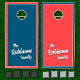 A retro family name cornhole set with simple but elegant typography. Featuring contrasting boards - red with blue border and blue with red border. Personalise with your surname for a truly unique yard game that you'll be using again and again. Ideal for vacation, reunions, BBQs and more.