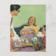 Retro Family Serves Mom Breakfast in Bed Postcard