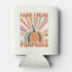 This vibrant and retro-inspired fall design highlights the phrase "Farm Fresh Pumpkins" in bold, playful typography that immediately grabs attention. At the center of the design is a large, stylized pumpkin, depicted in warm autumnal shades of orange, brown, and cream. The pumpkin is framed by a dynamic burst of colorful rays extending outward, featuring a palette of muted oranges, pinks, yellows, and greens that add a nostalgic, vintage feel to the design. The combination of the sunburst pattern and the chunky, curvaceous font gives the artwork a fun and energetic vibe, perfect for capturing the festive spirit of fall.